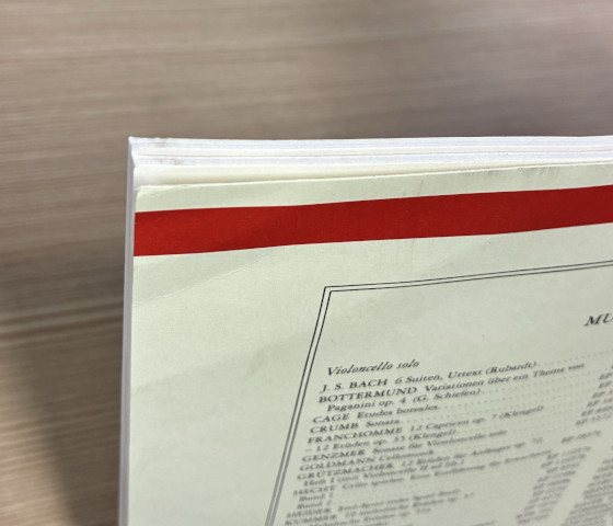 楽譜角と下部に折れ・へこみがあります。