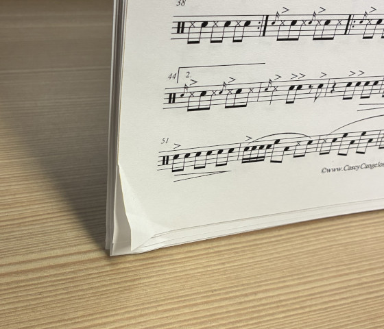 スコア裏の右下と、パート譜表の左下に折れがあります。
