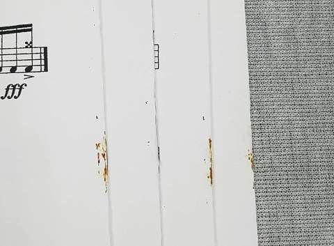 また、パート譜のホチキス留め部分にさびがあります。